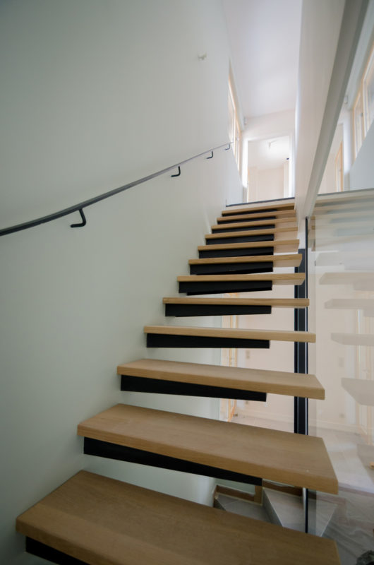 L’assise de la maison est constituée par un volume épuré qui accueille un grand espace de vie transparent et des espaces extérieurs privilégiés; à savoir un patio intime en relation directe avec l’intérieur et une terrasse panoramique qui embrasse la vue sur le bassin genevois et la campagne environnante.