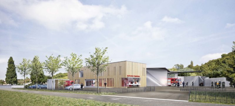 Le bâtiment administratif en bois apporte une certaine douceur dans un ensemble très fonctionnel et donne une image apaisée et contemporaine à la fonction des sapeurs-pompiers.